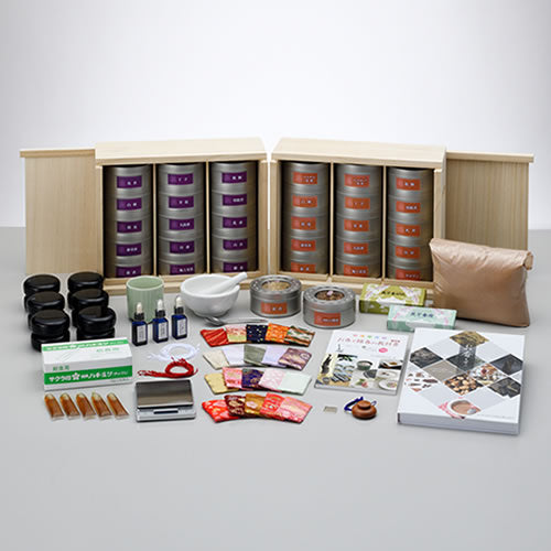 調合の基礎・応用、ノウハウが学べる全30回の秘伝の調合レシピであなただけの調合をできるようになります。100回以上のお香制作ができる香源料が入った香箪笥とすぐに始められるお香づくり道具一式がついてきます。